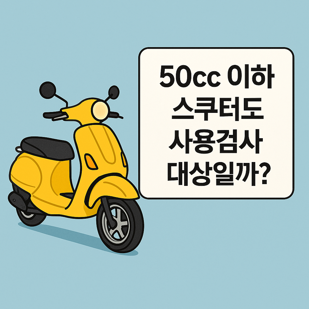 현행 법규에 따르면, 사용검사 대상은 125cc를 초과하는 이륜자동차입니다. 따라서 50cc 이하 소형 스쿠터는 사용검사 의무 대상에 포함되지 않습니다.