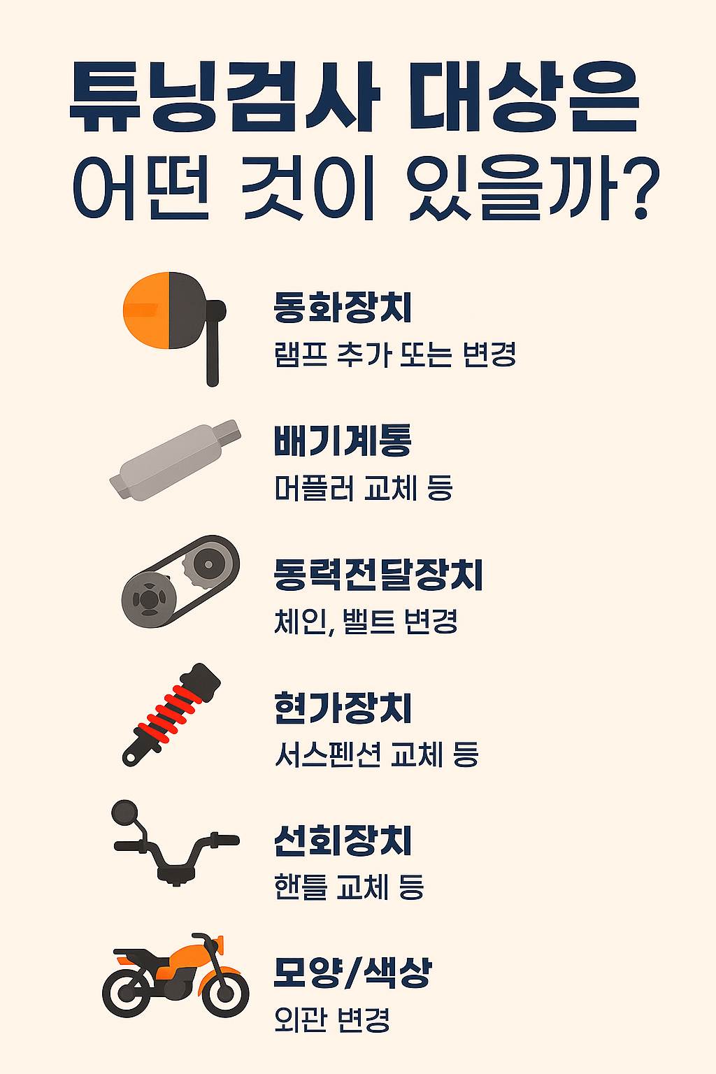 이륜자동차 튜닝검사 대상은 어떤 것이 있을까?